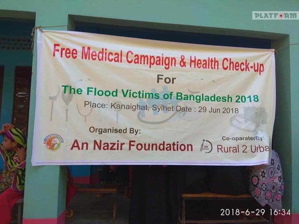 সিলেটের কানাইঘাট উপজেলায় বন্যার্তদের নিয়ে হেলথ ক্যাম্পেইনের আয়োজন করলো “আন নাজির ফাউন্ডেশন” এবং সহযোগিতায় ছিলো সামাজিক সংগঠন “রুরাল টু আরবান”।