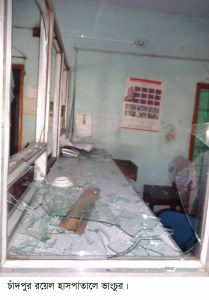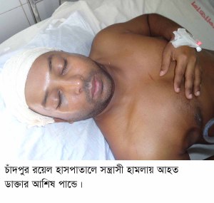 এদিকে রোগীর আত্মীয়-স্বজন এই খবর পেয়ে বেপরোয়াভাবে চাঁদপুর রয়েল হাসপাতালে ব্যাপক ভাংচুর এবং কর্তব্যরত ডাক্তারকে তৃতীয় তলা থেকে মারতে মারতে এক পর্যায়ে তিনি রক্তাক্ত হয়ে মাটিতে লুটিয়ে পড়েন। এ সময়ও রোগীর আত্মীয়-স্বজন ও বহিরাগত সন্ত্রাসীরা ওই ডাক্তারকে টেনে হেঁচড়ে ২য় তলায় নামিয়ে আনেন। সেখানে ডাক্তারকে মাটিতে পড়ে থাকা অবস্থায় বেদম মারতে থাকলে পুরো হাসপাতালের মেঝে ডাক্তারের রক্তে রঞ্জিত হয়ে যায়। পরে ডা. আশিষ পান্ডেকে গুরুতর আহত অবস্থায় চিকিৎসার জন্যে চাঁদপুর আড়াইশ’ শয্যার হাসপাতালে ভর্তি করা হয়। বর্তমানে তার অবস্থা আশঙ্কাজনক।