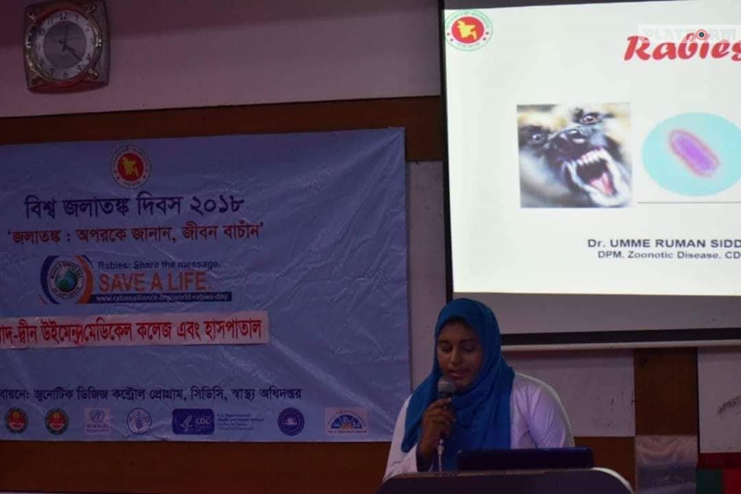 গত ২৮ সেপ্টেম্বর ছিল বিশ্ব জলাতন্ক দিবস।সেই সূত্র ধরে স্বাস্থ্য অধিদপ্তর এবং ‘প্ল্যাটফর্ম” এর উদ্যোগে আজ আদ্-দ্বীন উইমেন্স মেডিকেল কলেজ ও হাসপাতালে পালিত হলো বিশ্ব জলাতঙ্ক দিবস’২০১৮।এবারে দিবস টির প্রতিপাদ্য ছিল “জলাতঙ্কঃ অপরকে জানান, জীবন বাঁচান “।