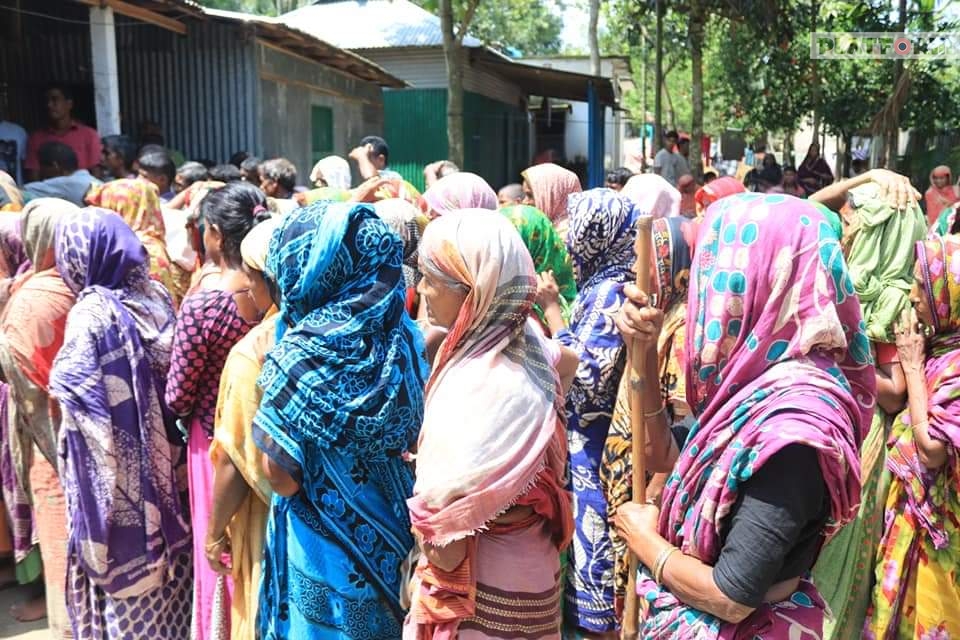 তারপর বেলা ১১.০০ ঘটিকা থেকে স্থানীয় প্রাথমিক বিদ্যালয়ের প্রধান শিক্ষকের বাড়ির আঙ্গিনায় ডা. নিহার রঞ্জন সরকার স্নেহাশিস-এর উপস্থিতিতে শরীফুল ইসলাম বাধন-এর নেতৃত্বে ৯ সদস্যের টিম প্ল্যাটফর্ম এবং স্থানীয় স্বেচ্ছাসেবীদের তত্বাবধানে ১০০টি বন্যার্ত পরিবারের মাঝে ত্রাণ বিতরণ কার্যক্রম শুরু হয়।