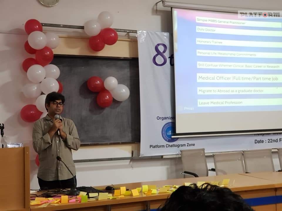 সবার শেষে এম বি বি এস পাশের পর এফ সি পি এস,এম ডি,এম ফিল ইত্যাদি ডিগ্রী অর্জনের জন্য কীভাবে অধ্যায়ন করা লাগবে সে সম্পর্কে আলোচনাকালে দেশ ও বিদেশের বিভিন্ন গুরুত্বপূর্ণ পদে কর্মরত ডাক্তার দের জীবনী ও ডাক্তারি পেশার অতীত-বর্তমান-ভবিষ্যৎ সম্পর্কে তুলনামূলক আলোচনা উপস্থাপন করেন প্ল্যাটফর্ম এর প্রতিষ্ঠাতা ডাঃ মোহিব নীরব(ফেজ বি রেসিডেন্ট, অনকোলজি, BSMMU, চমেক ৪৮)