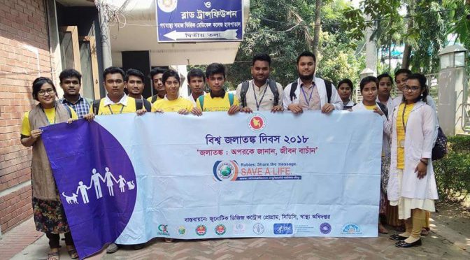 স্বাস্থ্য অধিদপ্তরের রোগ নিয়ন্ত্রন শাখা, সিডিসি’র উদ্যোগে এবং চিকিৎসক ও চিকিৎসা শিক্ষার্থীদের সংগঠন “প্ল্যাটফর্ম” এর সার্বিক সহযোগিতায় ২৯ সেপ্টেম্বর,শনিবার,২০১৮ সারাদেশের প্রায় ৪৫ টা মেডিকেল ও ডেন্টাল কলেজে এক যোগে পালিত হয় ‘বিশ্ব জলাতঙ্ক দিবস’২০১৮ । এরই ধারাবাহিকতায় জলাতঙ্ক রোগ নিয়ে জনসচেতনতা গড়ে তোলার জন্য নর্থ ইস্ট মেডিকেল কলেজে “জলাতঙ্কঃ অপরকে […]
